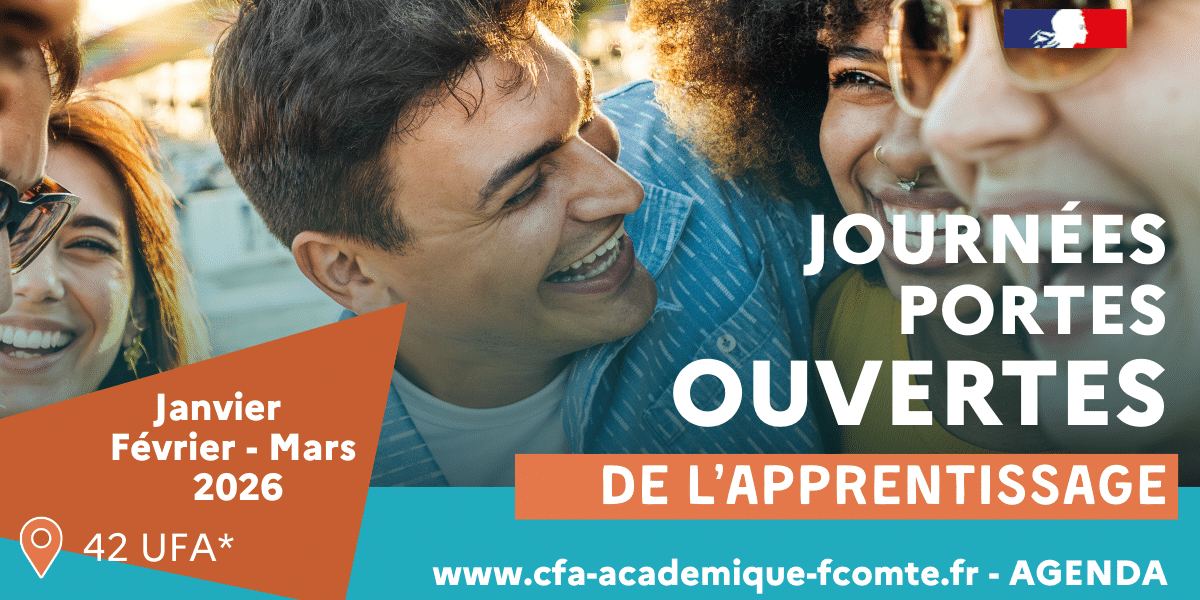 Journées Portes Ouvertes des UFA francs-comtoisesLes offres de formation en apprentissage dans votre région ! Consultez le catalogue en cliquant sur…
