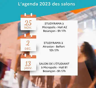 Le Salon Studyrama des Etudes Supérieures de Besançon vous donne rendez-vous au Parc des expositions Micropolis, le samedi 25 décembre 2023, de 9h à 17h.